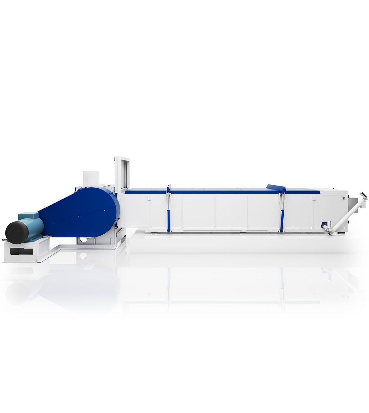 Sistema de retificação Onestep específico para tubos e perfis de grande diâmetro e alta espessura sem a necessidade de pré-trituração. É possível lixar continuamente tubos lisos e ondulados em PEAD, PP e PVC RÍGIDO até um comprimento máximo de 6m. São granuladores altamente robustos com rotor de diâmetro de 830 a 1930 mm. O sistema consiste em uma caixa de carregamento com fechamento hidráulico para carregamento dos tubos que os despeja automaticamente diretamente na tremonha de carregamento do moinho. Nesse caso, um empurrador de material atua avançando o tubo em direção à câmara de moagem. O avanço é controlado de acordo com a carga garantindo o uso ideal da máquina.